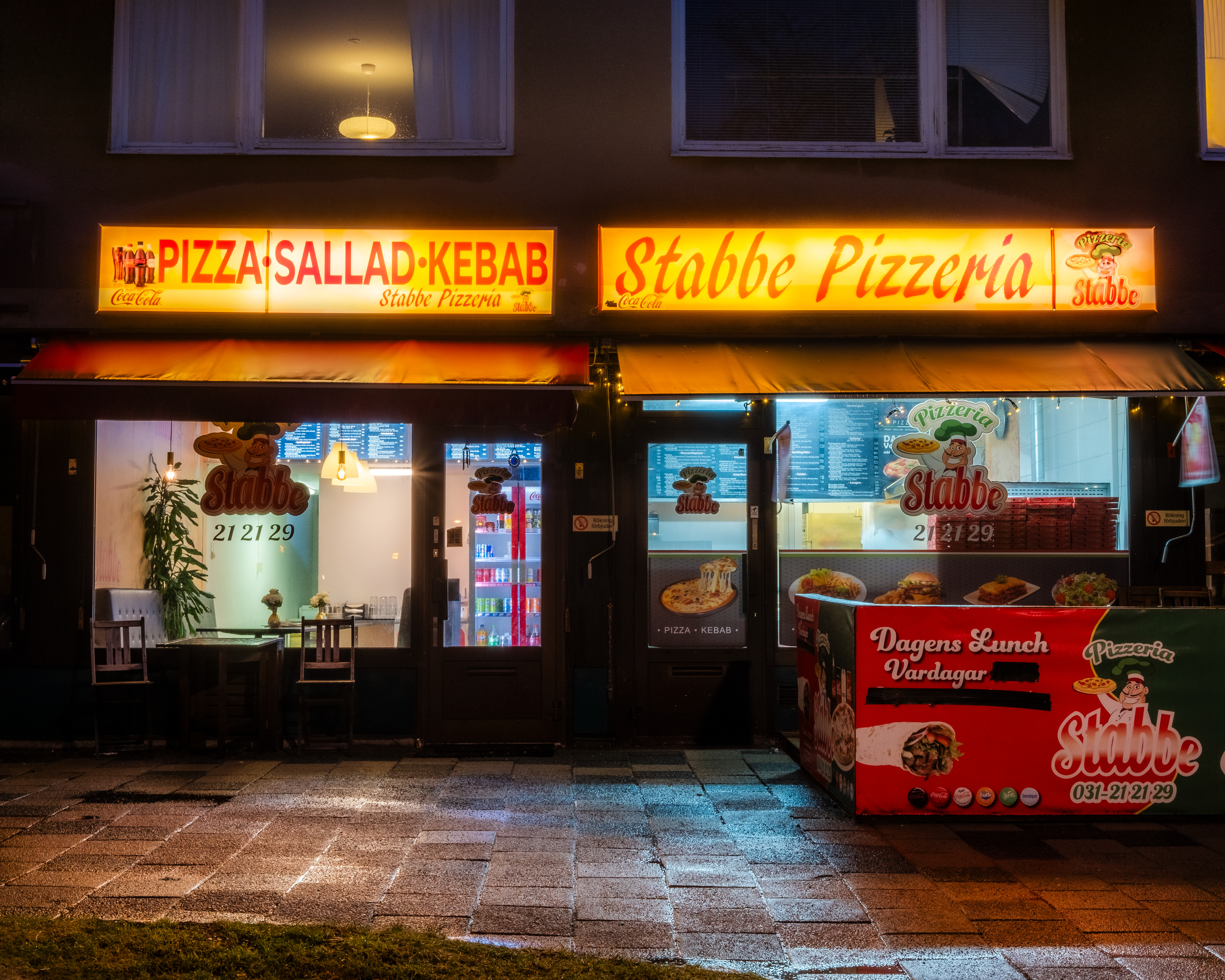 The pizzeria was early to break with the restaurant aesthetics of white table cloths and stiff ambience to signal that everyone was welcome. Here you might meet the struggling people of society, the alcoholics, the gambling addicts by the Jack Vegas machines, the unemployed, the outcasts but also the hard-working regular Joe's, the mother of 4 wanting to treat her family to a special Saturday out, the kids that are just learning that if you're willing to work there might be something to gain and asks if they can get a pizza if they help to fold 100 pizza boxes (true story). The Swedish pizzeria is an institution, a social structure and an important place, especially in smaller towns where other meeting points might be scarce.
